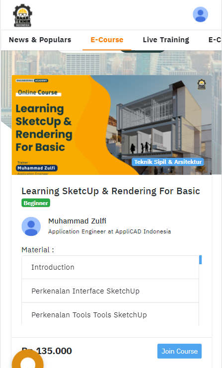 Untuk pemesanan E-Course bisa langsung klik menu E-Course, Kemudian klik Join Course.
