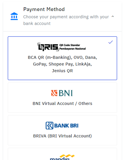 Pilih Metode Pembayaran / Payment Method yang bisa kamu pilih sesuai dengan kebutuhanmu. Ada banyak metode pembayaran yang bisa kamu pilih.