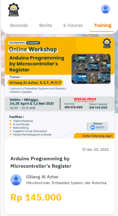 Untuk pemesanan Training bisa langsung klik menu Training , Kemudian Klik Training Yang Ingin di Ikuti.